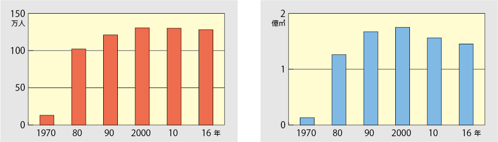 p30①奈良県営水道の給水人口(左)と給水量(右).png