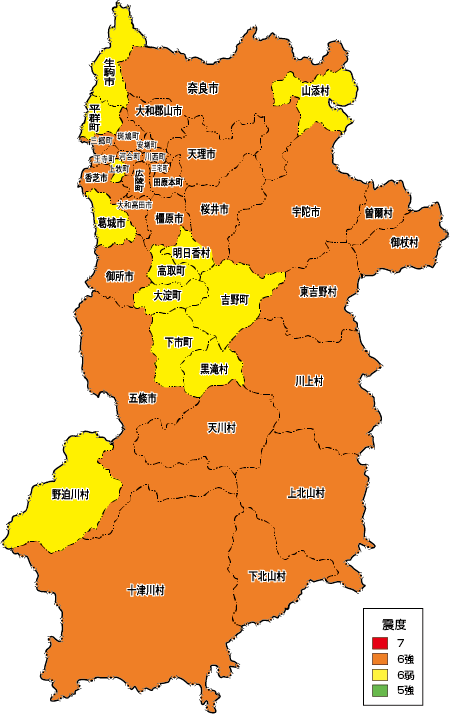 奈良県の地震災害